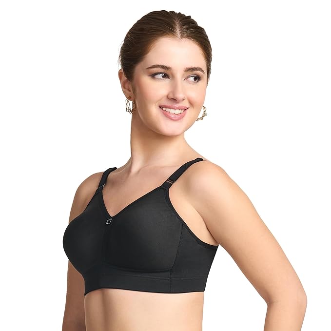 100% HOSIERY COTTON FABRIC. NON-PADDED,NON-WIRED,FULL COVERAGE. SEAMLESS AND DOUBLE LAYERED MOLDED CUPS. 4 X 4 BACK HOOK,BROAD INNER BELT. NYLON STRAPS AND FLEXI-GRIP ELASTIC.